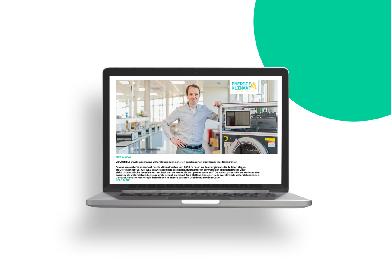 VSPARTICLE maakt opschaling waterstofproductie sneller, goedkoper en duurzamer met Nanoprinter